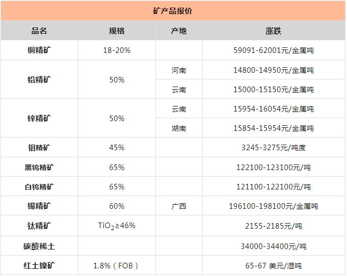 科礦|2月6日金屬、礦產品及非金屬現(xiàn)貨行情報價單