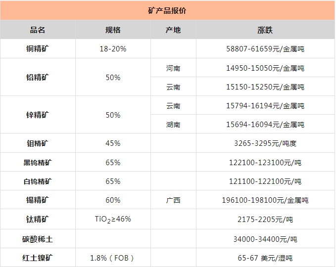 礦產(chǎn)報(bào)價(jià)、資訊