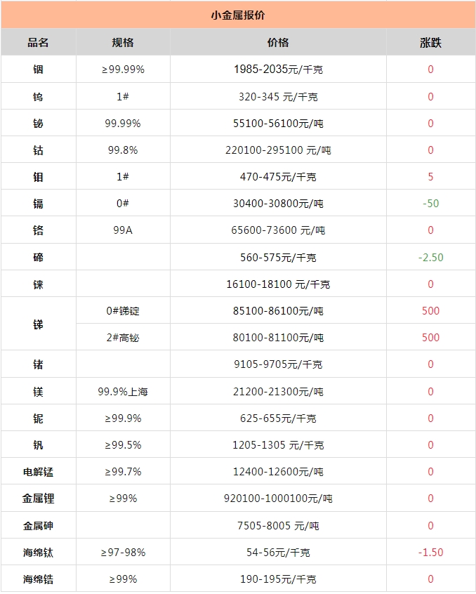 科礦|2月11日金屬、礦產(chǎn)品及非金屬現(xiàn)貨行情報(bào)價(jià)單