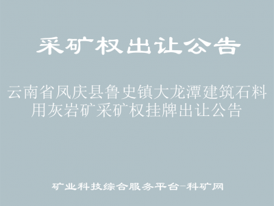 云南省鳳慶縣魯史鎮(zhèn)大龍?zhí)督ㄖ嫌没規(guī)r礦采礦權(quán)掛牌出讓公告