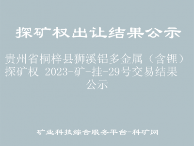 根據(jù)《中華人民共和國礦產(chǎn)資源法》、《探礦權(quán)采礦權(quán)招標(biāo)拍賣掛牌管理辦法》、《礦業(yè)權(quán)出讓交易規(guī)則》等有關(guān)規(guī)定,受遵義市自然資源局的委托,我中心于2023年12月27日至2024年1月10日對1宗探礦權(quán)進(jìn)行掛牌出讓,現(xiàn)將成交結(jié)果公示如下: