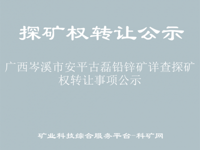 根據(jù)《國務(wù)院關(guān)于第一批清理規(guī)范89項(xiàng)國務(wù)院部門行政審批中介服務(wù)事項(xiàng)的決定》(國發(fā)〔2015〕58號(hào))和《自然資源部關(guān)于印發(fā)礦業(yè)權(quán)出讓交易規(guī)則的通知》(自然資規(guī)〔2023〕1號(hào))的規(guī)定,現(xiàn)將廣西岑溪市安平古磊鉛鋅礦詳查探礦權(quán)轉(zhuǎn)讓變更有關(guān)事項(xiàng)公示如下: