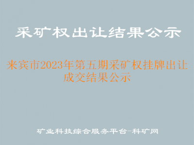 經(jīng)來賓市人民政府批準(zhǔn),受來賓市自然資源局委托,來賓市公共資源交易中心于2023年11月20日至2024年1月23日組織了來賓市2023年第五期的采礦權(quán)線上公開掛牌出讓交易活動,現(xiàn)將交易結(jié)果進(jìn)行公示。