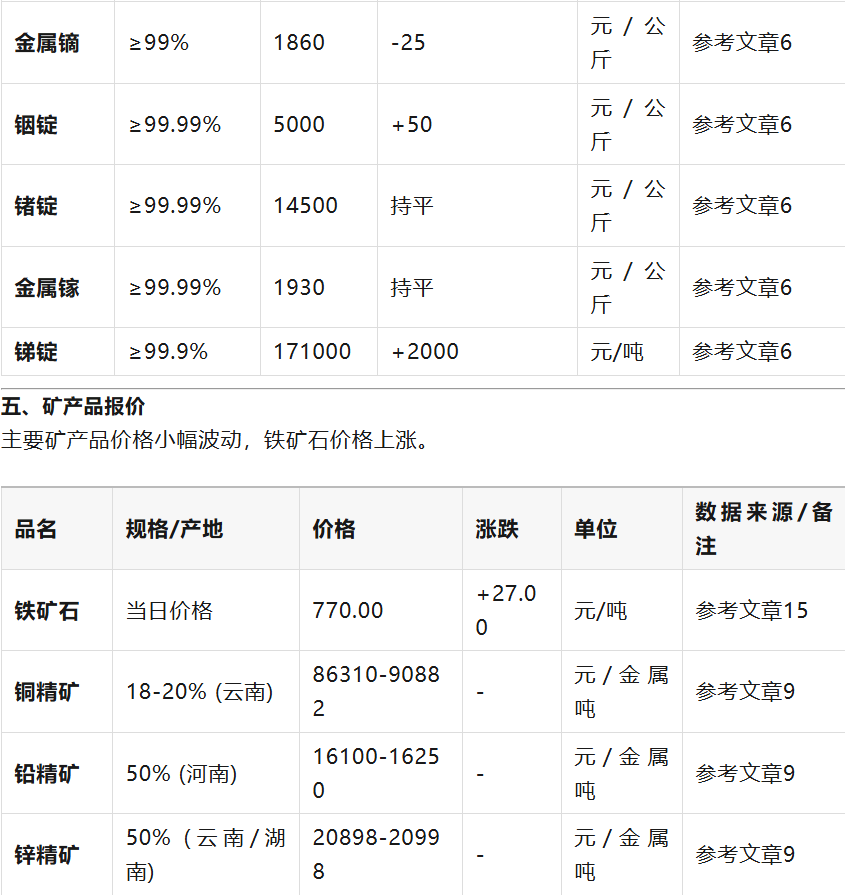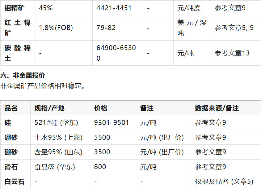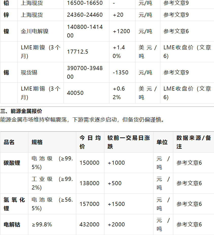 今日市場(chǎng)整體表現(xiàn)分化。貴金屬黃金在沖高后回落,受美元和美債收益率影響承壓?;窘饘僦?,銅價(jià)微跌,但鋁、鋅、鎳等因低庫(kù)存和需求預(yù)期而上漲。稀有金屬鎢、鉬因供給端收縮價(jià)格持續(xù)創(chuàng)新高,而稀土則因下游需求不足出現(xiàn)回調(diào)。 信息獲取建議: