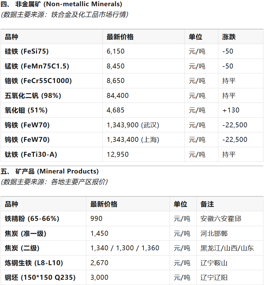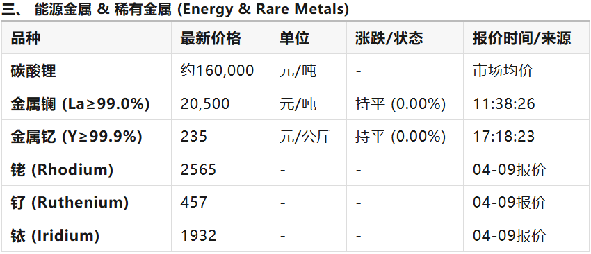 科礦|4月9日金屬、礦產(chǎn)品及非金屬現(xiàn)貨行情報(bào)價(jià)單