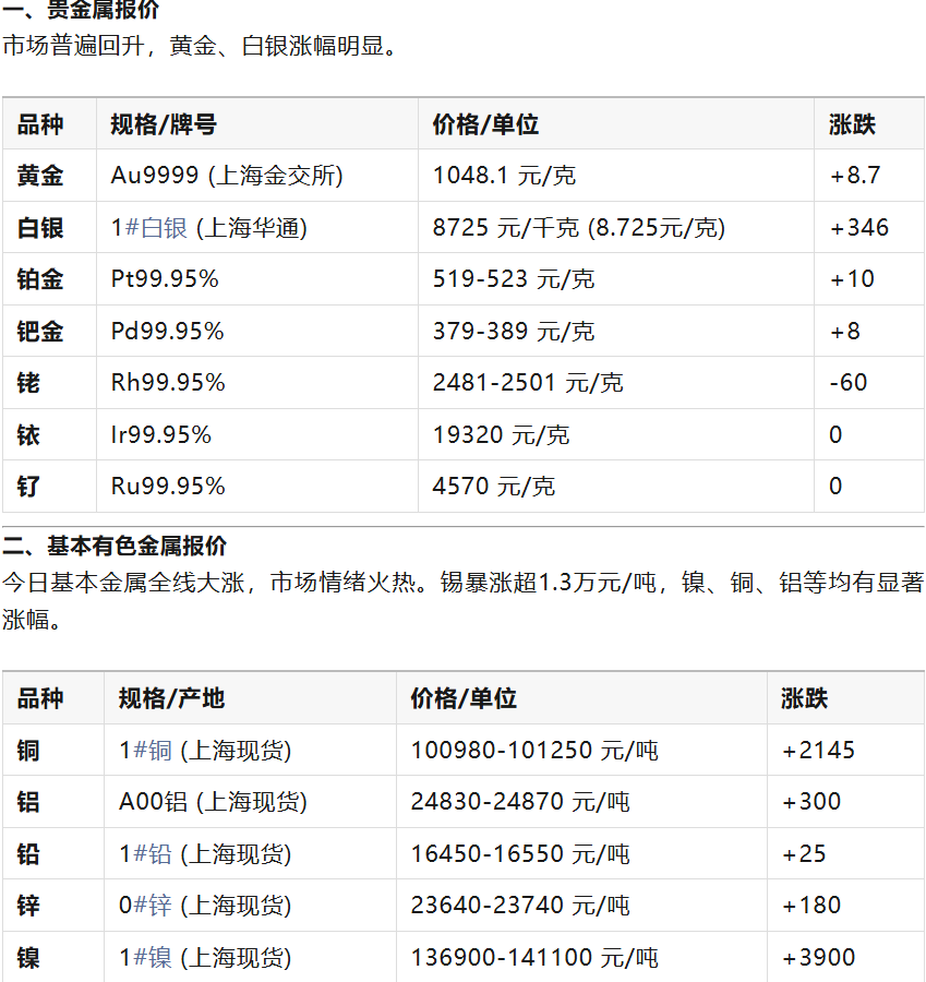 科礦|4月14日金屬、礦產(chǎn)品及非金屬現(xiàn)貨行情報(bào)價(jià)單