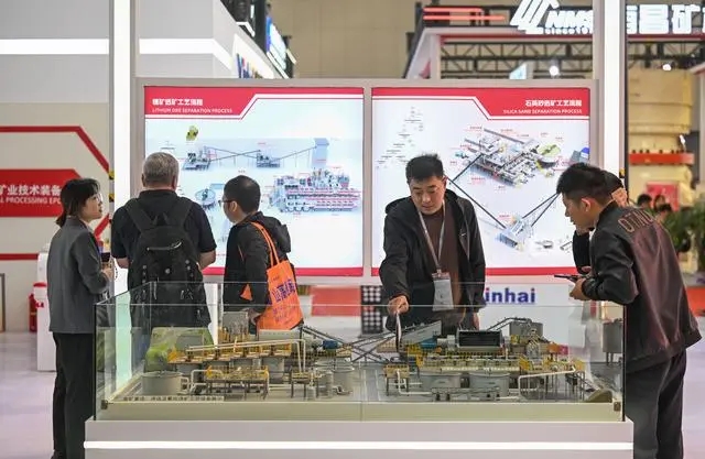10月26日,在天津梅江會展中心,觀眾在國際礦業(yè)展覽會上參觀礦業(yè)裝備模型。 新華社記者 孫凡越 攝